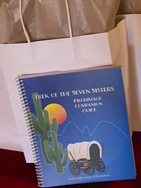 Gift bags to Heritage Society member luncheon attendees included a copy of "Trek of the Seven Sisters: Pilgrimage Companion Guide," which co-author Mary (Caratan) Sloper '62 discussed in her featured talk during the gathering.