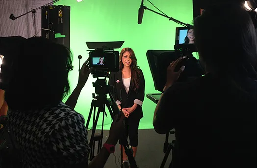 All students taking a course from the Film, Media and Communication department, regardless of their major, can take full advantage of the facilities for their academic, professional or personal projects. Rosi Gonzalez ’23, a major in Spanish Studies, took a digital video production course last semester and used the facility to develop her own video projects. “The studio is an excellent space for creativity and enhances our skills to execute our course projects and assignments. The location is also fantastic because it provides content when it comes to working on assignments out of the studio,” says Gonzalez.