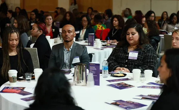 Robin Owens, PhD, associate professor of religious studies and director of the Center for the Advancement of Women, served as the emcee for the event. She also hosted a live episode of her podcast, “Leadership Purpose With Dr. Robin," with guest Mallika Chopra, author and CEO of Chopra Global, at the event.