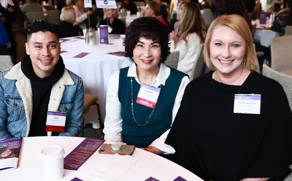 Mark Chavez '23 (left), who is currently pursuing his MBA, worked with Jennifer Nickerson (middle), senior vice president and corporate responsibility manager at City National Bank, one of the event's sponsors. Chavez served as a community relations specialist at the bank. Kendra Nickerson, PhD (right), is the Mount's associate director and training director, Counseling and Psychological Services. The two Nickersons are not related.